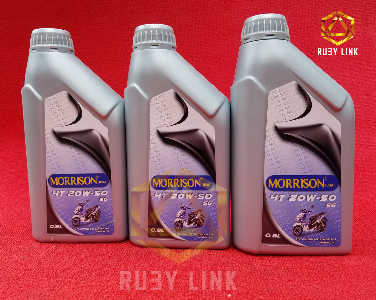 MORRISON MOTO 4T 20W - 50 SG là dầu động cơ xe máy 4 thì tính năng cao được đặc chế từ dầu gốc và phụ gia cao. Dầu có thể được dùng cho tất cả các xe máy hiện đại yêu cầu cấp API SG.