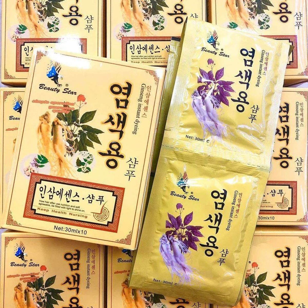 Dầu gội nhuộm tóc nhân sâm Beauty Star – Ginseng Instant Dyeing Shampoo 30ml x10 gói giá sỉ/bán buôn