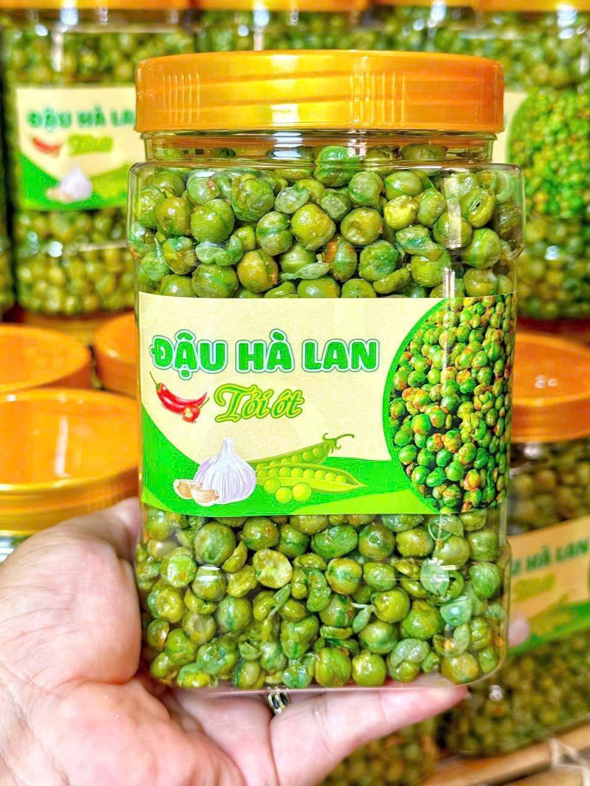 Đậu Hà lan hạt nhỏ thơm ngon, thêm vị cay của ớt, vị mặn mà của muối . Ngoài ra không sử dụng chất phụ gia và bảo quản. Sản phẩm để lâu được và ăn chay được.