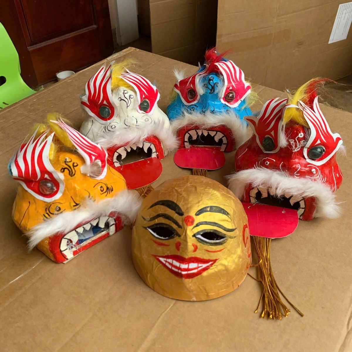 Đầu lân mini mắt gắn bi ve, nhìn sinh động hơn: kích thước: 22x22cm