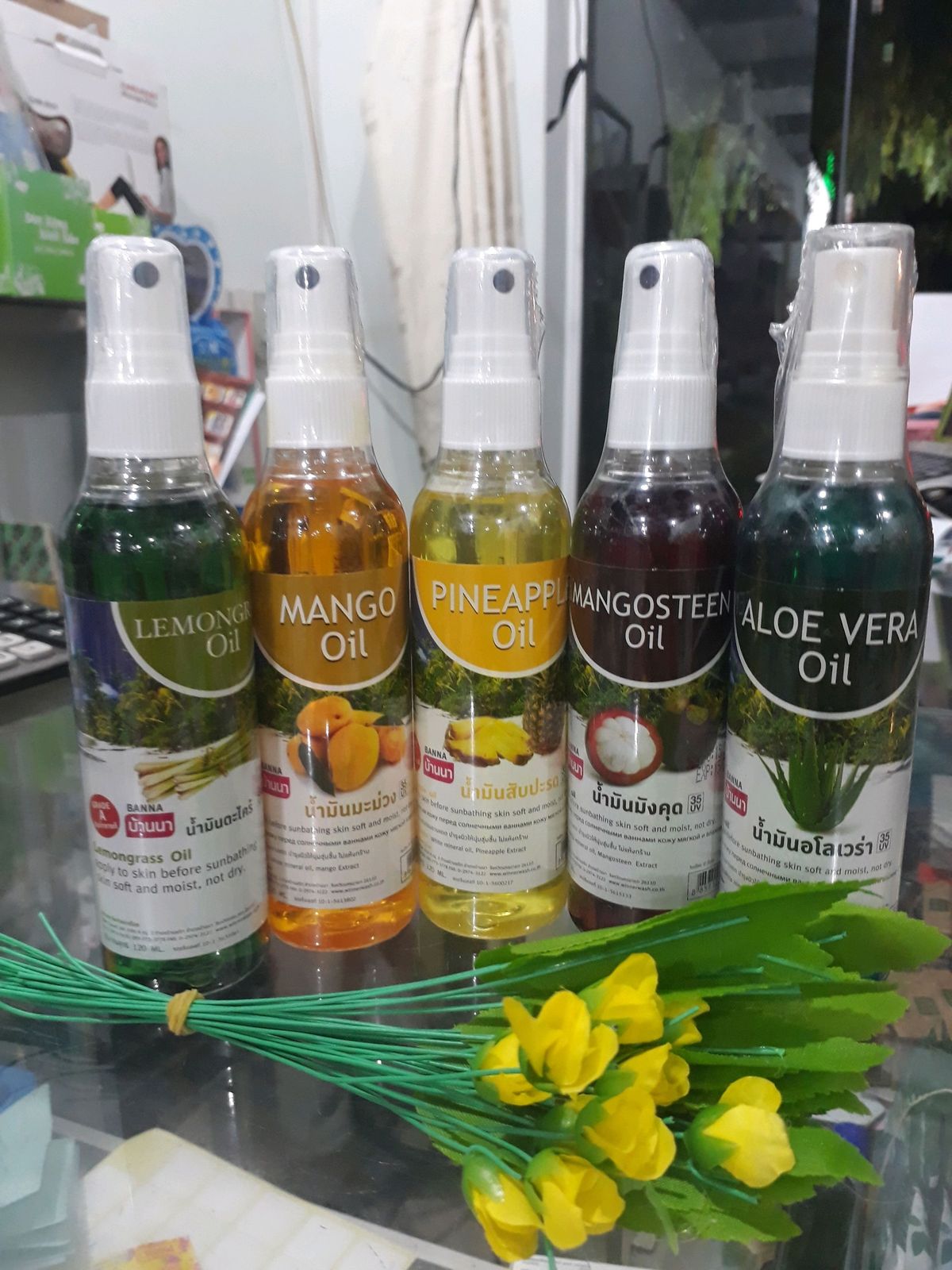 dầu massage hương tự nhiên , thơm , mịn da . có 5 mùi như hình : xoài , thơm , aloe , măng cụt , xã chanh