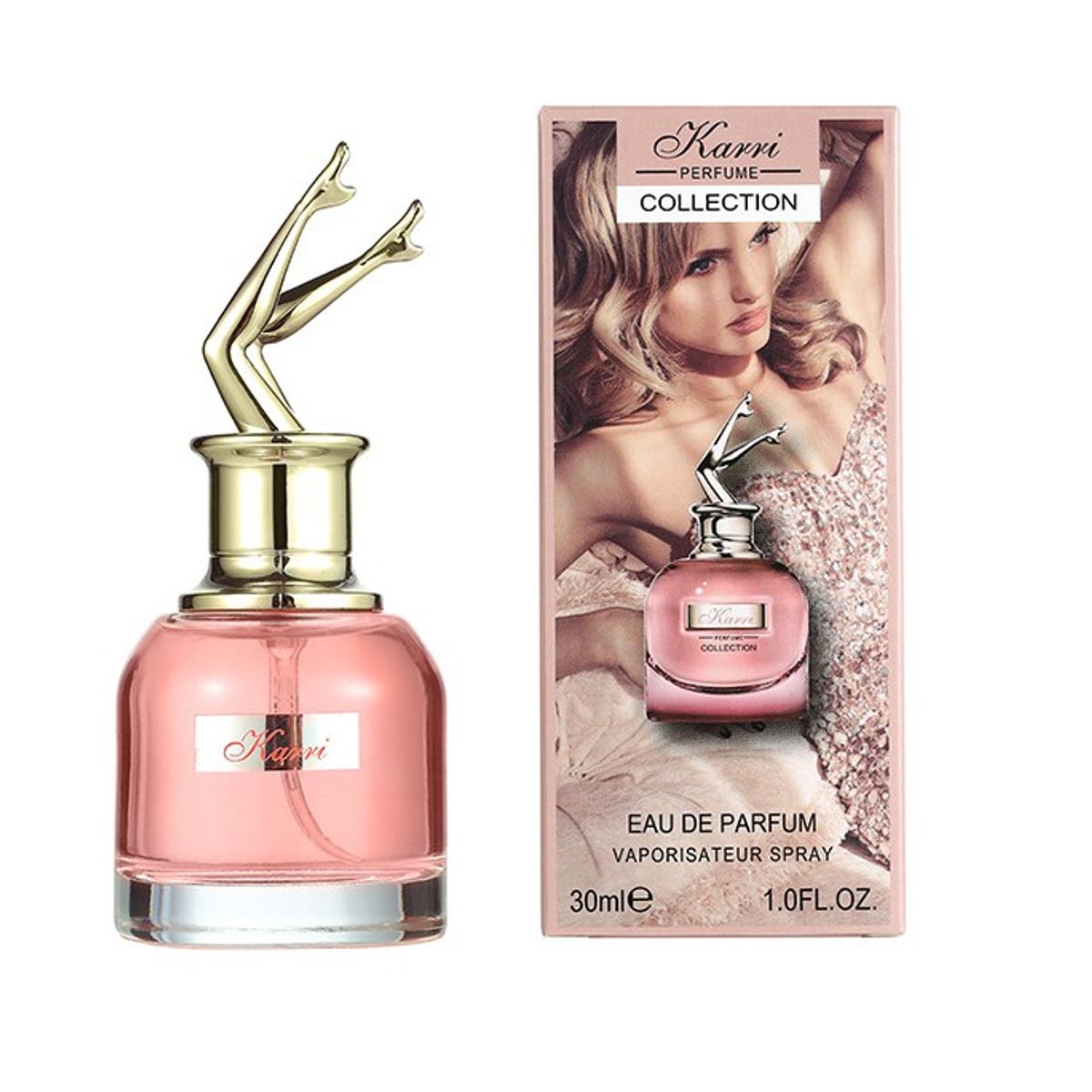 Karri Perfume Collection với thiết kế kiểu chai mới được làm bằng thủy tinh trong suốt, còn nắp chai được thiết kế theo hình dáng điêu khắc của đôi chân phái nữ với sự khắc họa bằng màu vàng nổi bật đã tạo 1 độc đáo mới lạ từ trước đến nay.