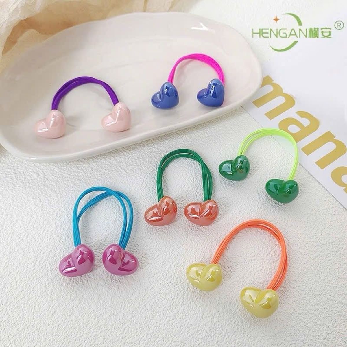 Bộ dây buộc tóc với thiết kế 2 đầu hạt hình trái tim xinh xắn, màu sắc tươi sáng và đáng yêu. Sản phẩm sử dụng dây thun co giãn tốt, đàn hồi cao, giúp buộc tóc chắc chắn mà không làm đau hay rứt tóc.