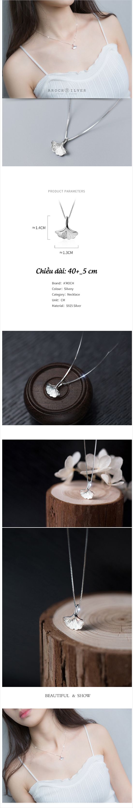 Dây chuyền bạc Ý s925 lá bạch quả nghệ thuật D0617 - AROCH Jewelry giá sỉ/bán buôn