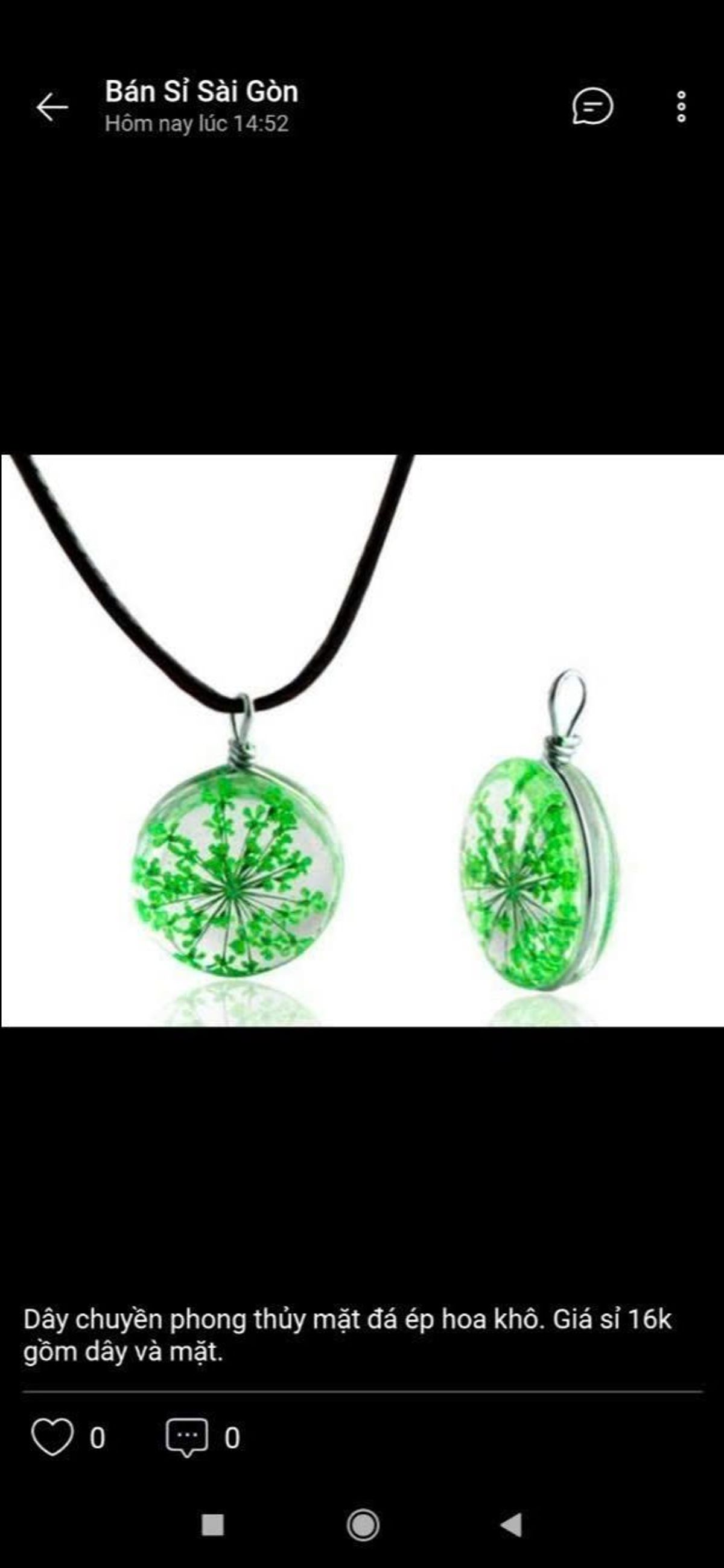 Dây chuyền mặt đá ép hoa khô dây da giá sỉ - giá bán buôn