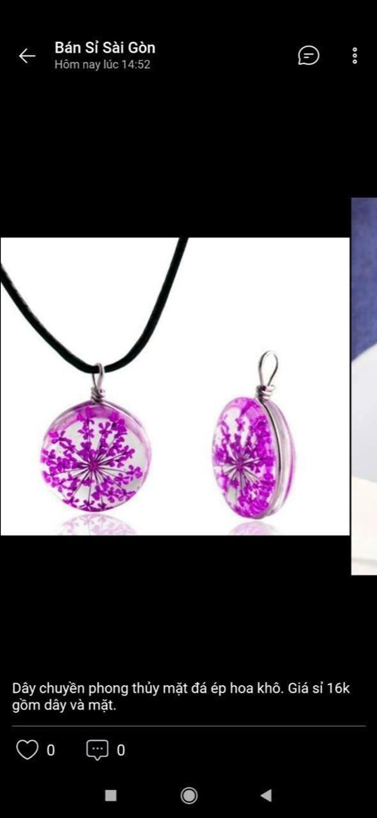 Dây chuyền mặt đá ép hoa khô dây da giá sỉ - giá bán buôn
