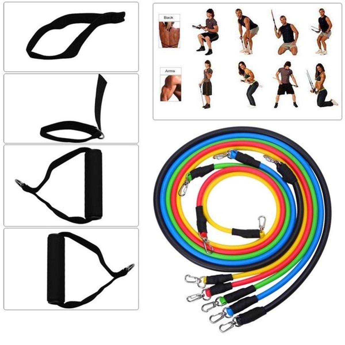 - Bộ sản phẩm gồm 5 dây ngũ sắc với các mức lực khác nhau cũng như các phụ kiện đi kèm