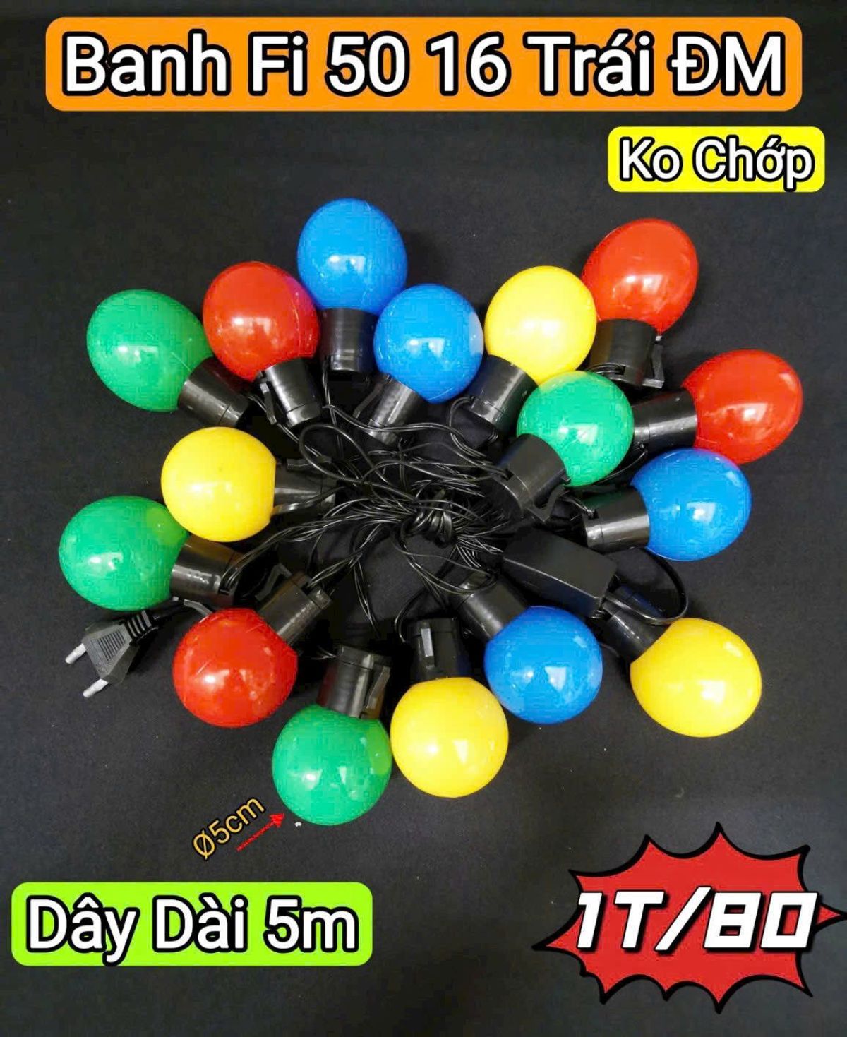 DÂY ĐÈN TRANG TRÍ BÓNG Fi-50 ĐỦ MÀU DÀI 5M 16 BÓNG giá sỉ - giá bán buôn