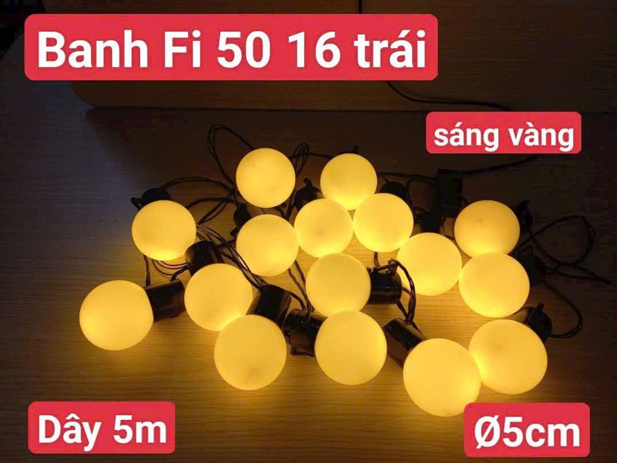 DÂY ĐÈN TRANG TRÍ BÓNG Fi-50 SÁNG VÀNG DÀI 5M 16 BÓNG giá sỉ - giá bán buôn