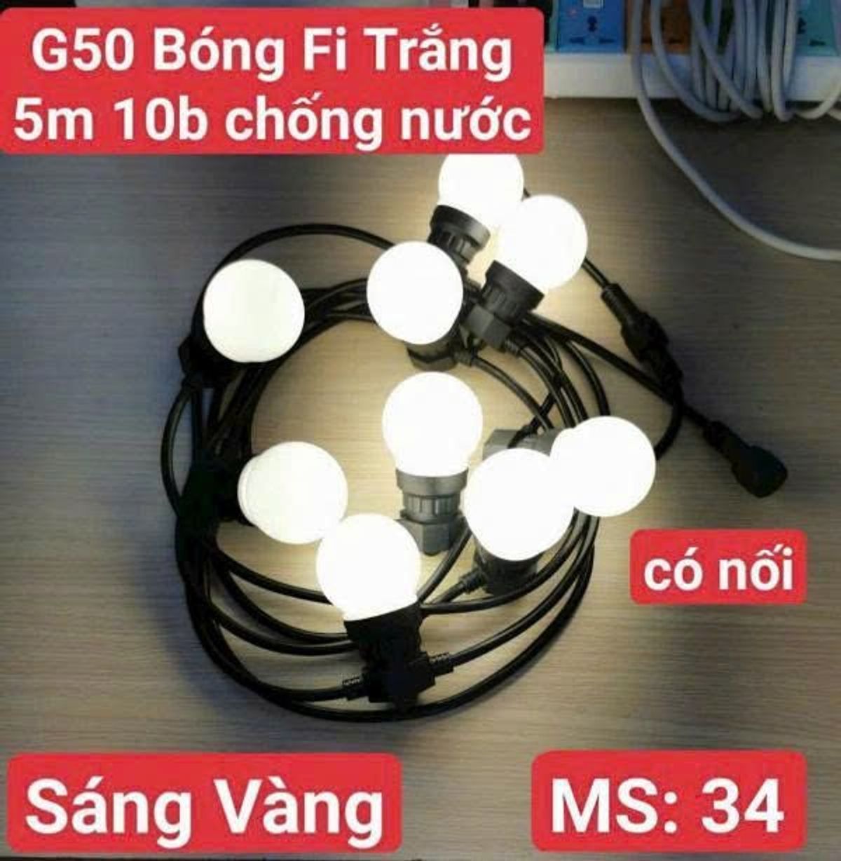 DÂY ĐÈN TRANG TRÍ G50 BÓNG Fi SÁNG VÀNG DÀI 5M 10 BÓNG giá sỉ - giá bán buôn