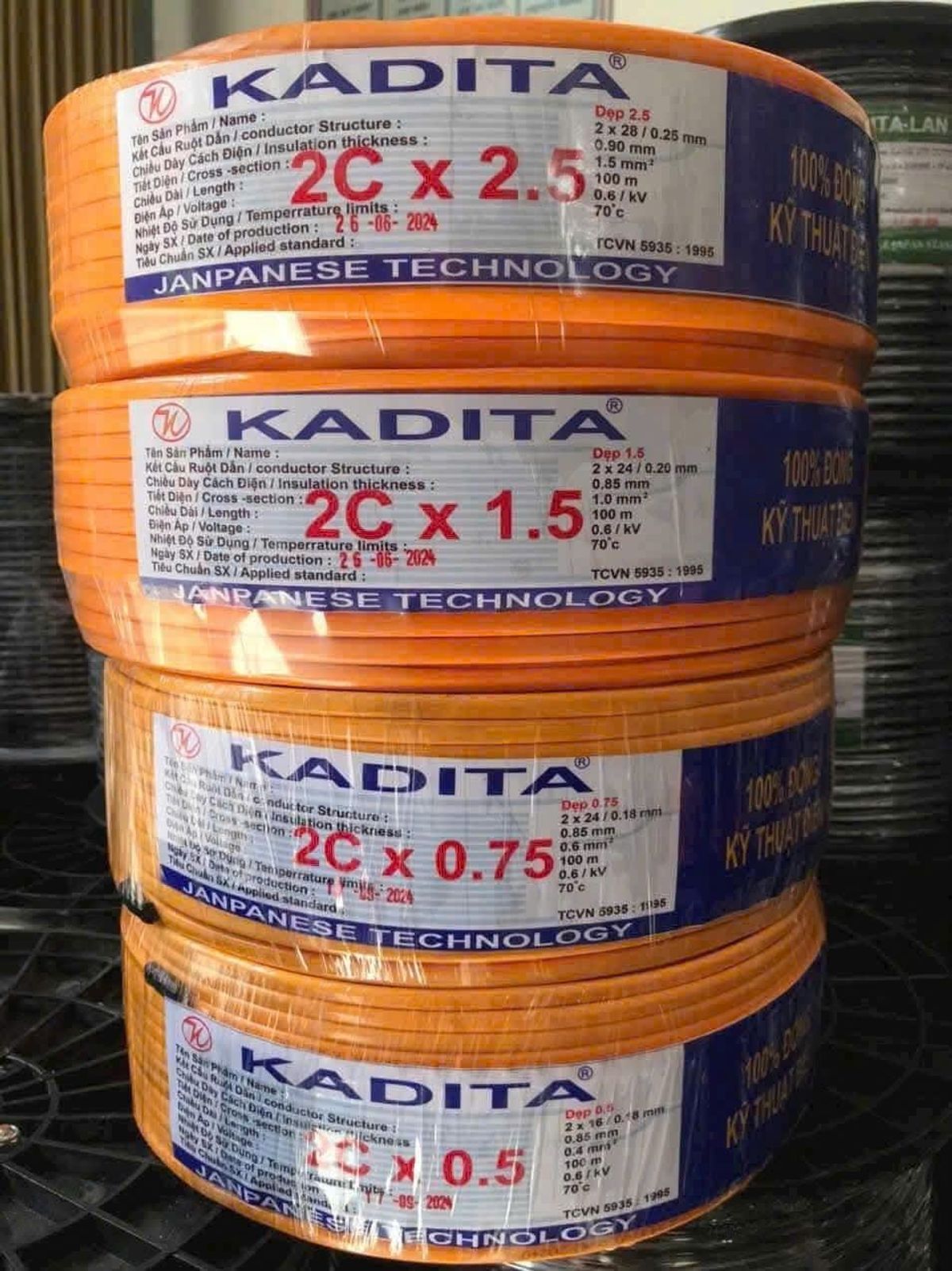 Dây điện Kadita 2 lớp vỏ 2C X 0.5 - 100M giá sỉ/bán buôn