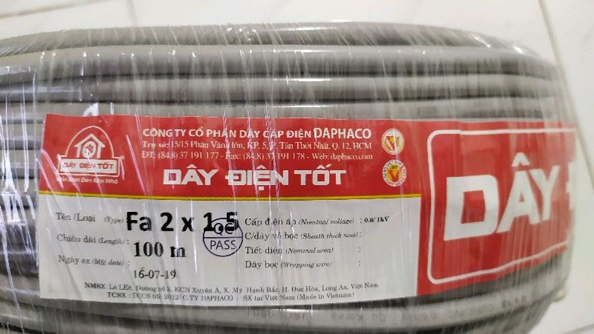 Dây điện tốt Daphaco tròn xám ruột đôi 2x15 giá sỉ/bán buôn