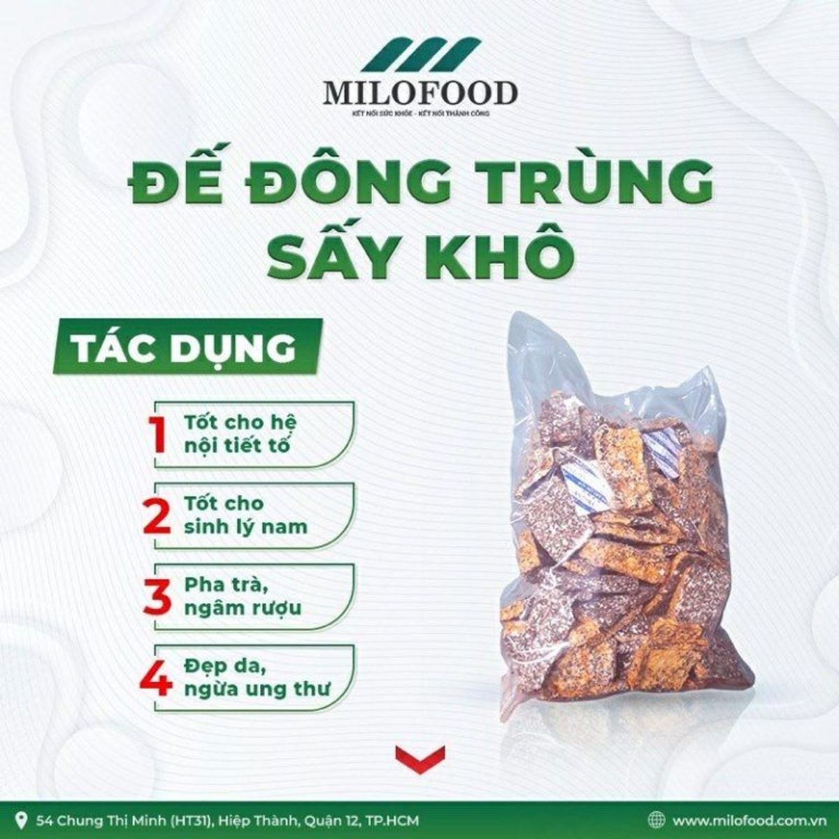 Về những công dụng mà sản phẩm mang đến cho sức khỏe con người là không thể bàn cãi. Mà hiện nay trên thị trường có quá nhiều đơn vị cung cấp sản phẩm, do đó mọi người nên cân nhắc lựa chọn kỹ lưỡng địa chỉ uy tín để mua sản phẩm. Một trong những gợi ý tuyệt vời dành cho quý khách hàng đó là Công ty MiloFood – Một trong những đơn vị chuyên nuôi trồng và phân phối sản phẩm đế đông trùng hạ thảo sấy khô đạt chuẩn, chất lượng tốt, giá cả cạnh tranh.