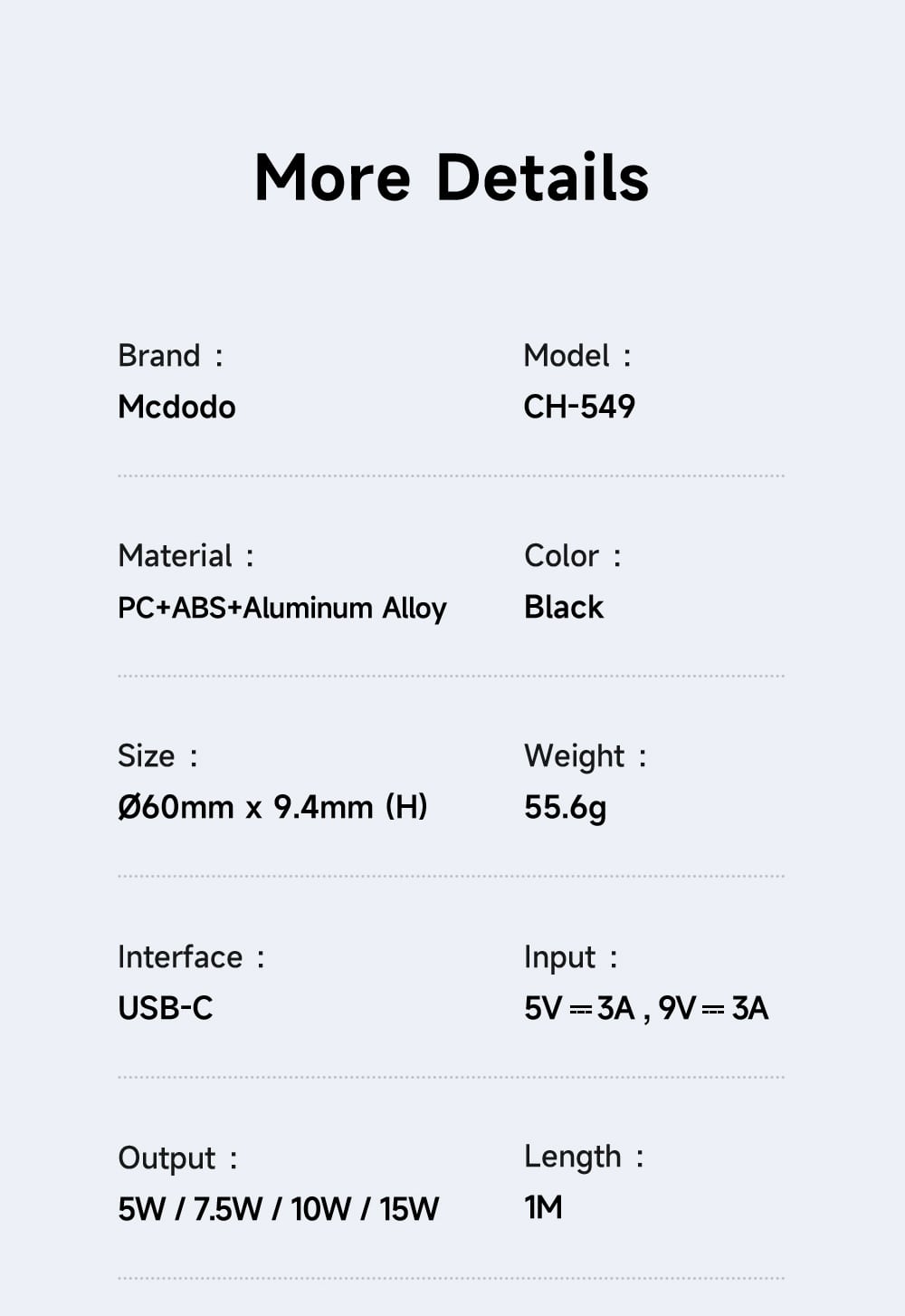 Đế Sạc Không Dây Mcdodo True 15W Magnetic Fast Wireless Charger là một lựa chọn hoàn hảo và đang tìm kiếm một giải pháp sạc không dây chất lượng và hiệu quả.