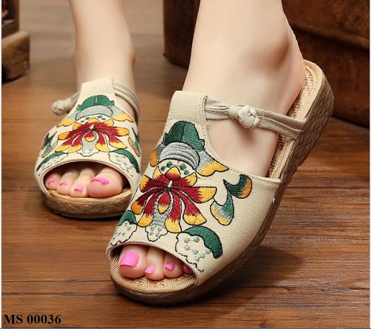 MS 00036: DeMikka dép thêu hoa - Chất liệu: vải thêu - Đế: PVC - Lót: sợi đay - Chức năng: thấm mồ hôi, thoáng khí, khử mùi hiệu quả