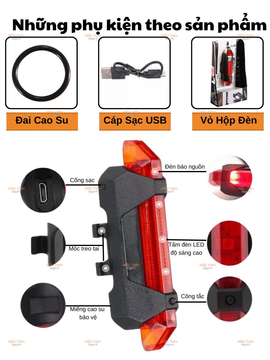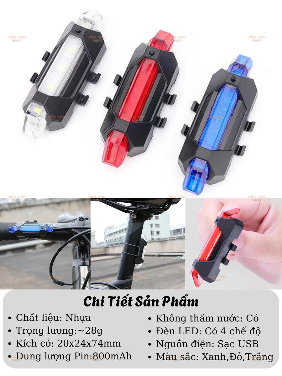 Đèn Hậu Xe Đạp Thể Thao Cảnh Báo Chớp Nháy 4 Chế Độ Siêu Sáng, Đèn Hậu + Phụ Kiện Sạc USB Đi Kèm
