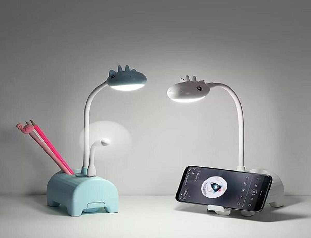 ĐÈN HỌC KHỦNG LONG KIÊM GIÁ ĐỠ, QUẠT, ĐỰNG VIẾT 6IN1