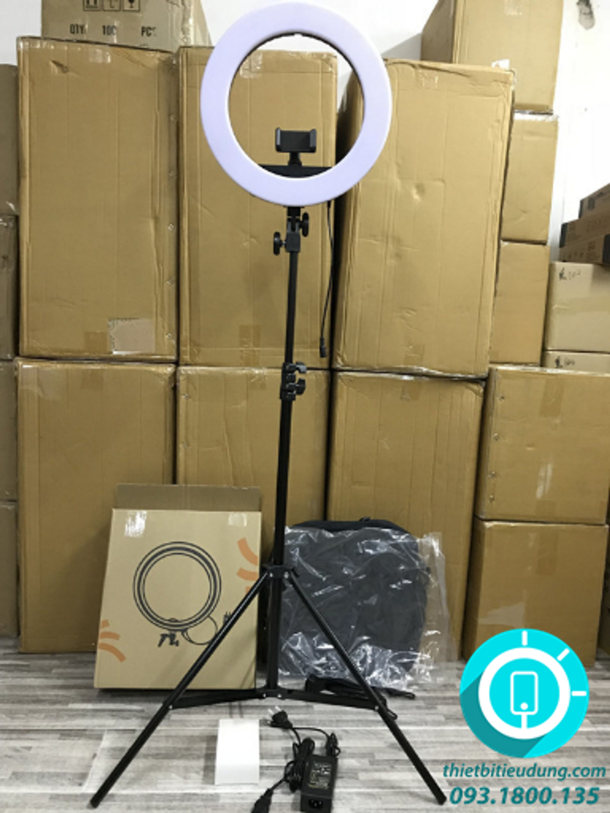 Bộ fullbox gồm : túi + đèn + chân + kẹp điện thoại