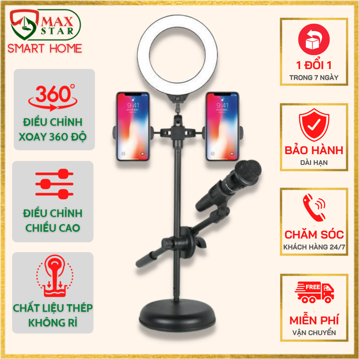 Bộ sản phẩm có 2 chức năng rất tiện dụng cho bạn hay Livestream hay bán hàng online hay cho mọi người xem, hay làm việc. Có đèn Led siêu sáng, giúp cho hình ảnh của bạn luôn sáng rõ đẹp khi phát Livestream Cùng với đế kẹp giúp giữ thăng bằng, Giá đỡ tiện dụng 2 điện thoại cùng 1 lúc.