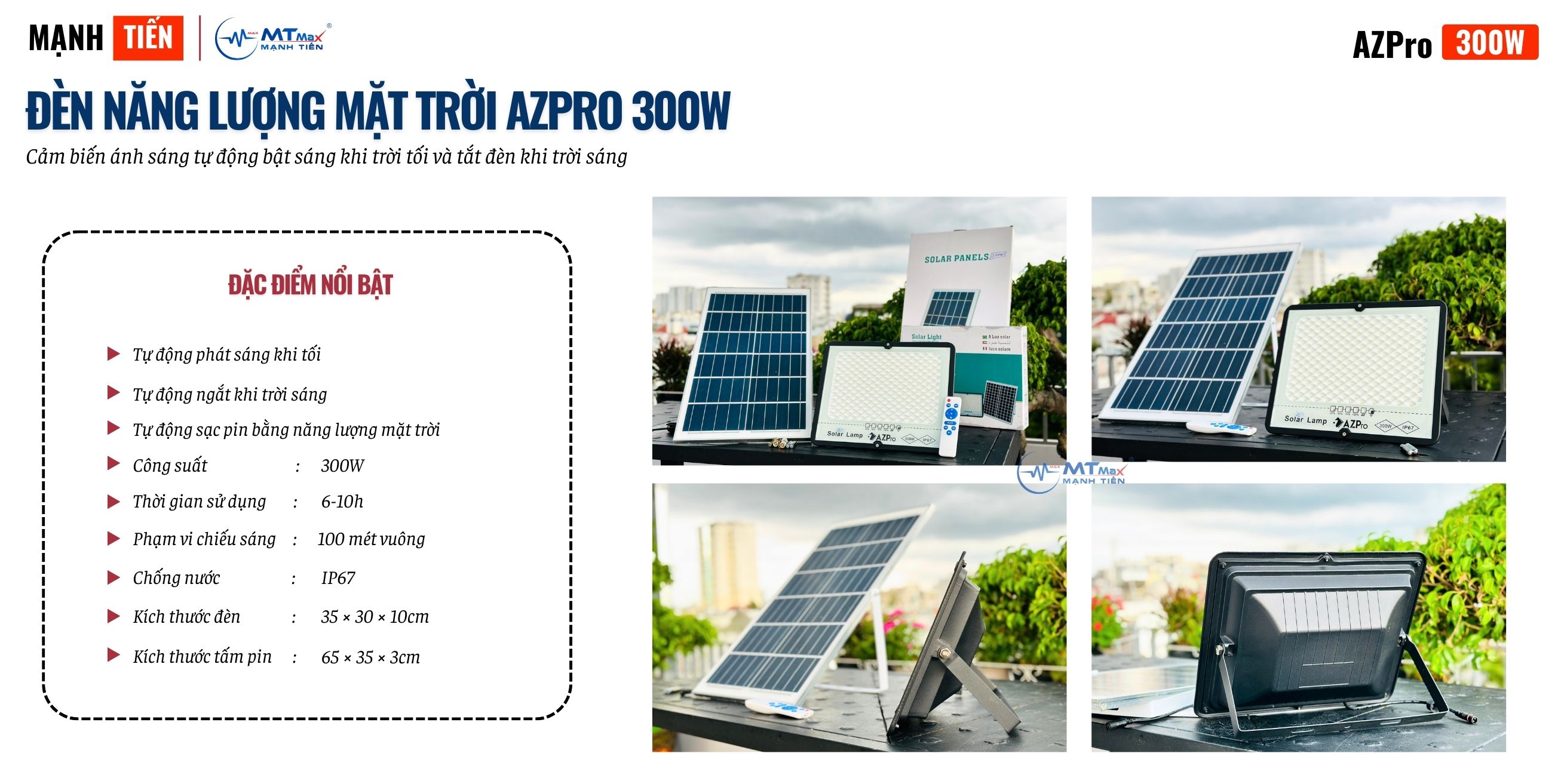 Nhu cầu sử dụng đèn năng lượng mặt trời ngày càng phổ biến, đặc biệt là trong việc chiếu sáng ngoài trời. Và để đáp ứng những yêu cầu khắt khe của người tiêu dùng, Đèn Năng Lượng Mặt Trời AZPro 300W Thế Hệ Mới đã xuất hiện với nhiều ưu điểm nổi bật mà bạn không thể bỏ qua.