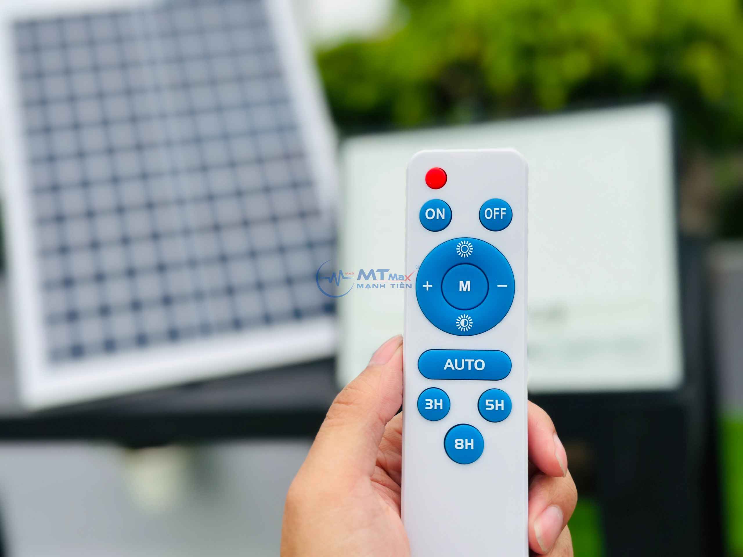 Đèn AZPro 300W đi kèm với một điều khiển từ xa cho phép bạn kiểm soát đèn từ khoảng cách 7-10 mét. Bạn có thể dễ dàng bật/tắt đèn, chọn chế độ tự động hoặc hẹn giờ theo ý muốn (3h/5h/8h).