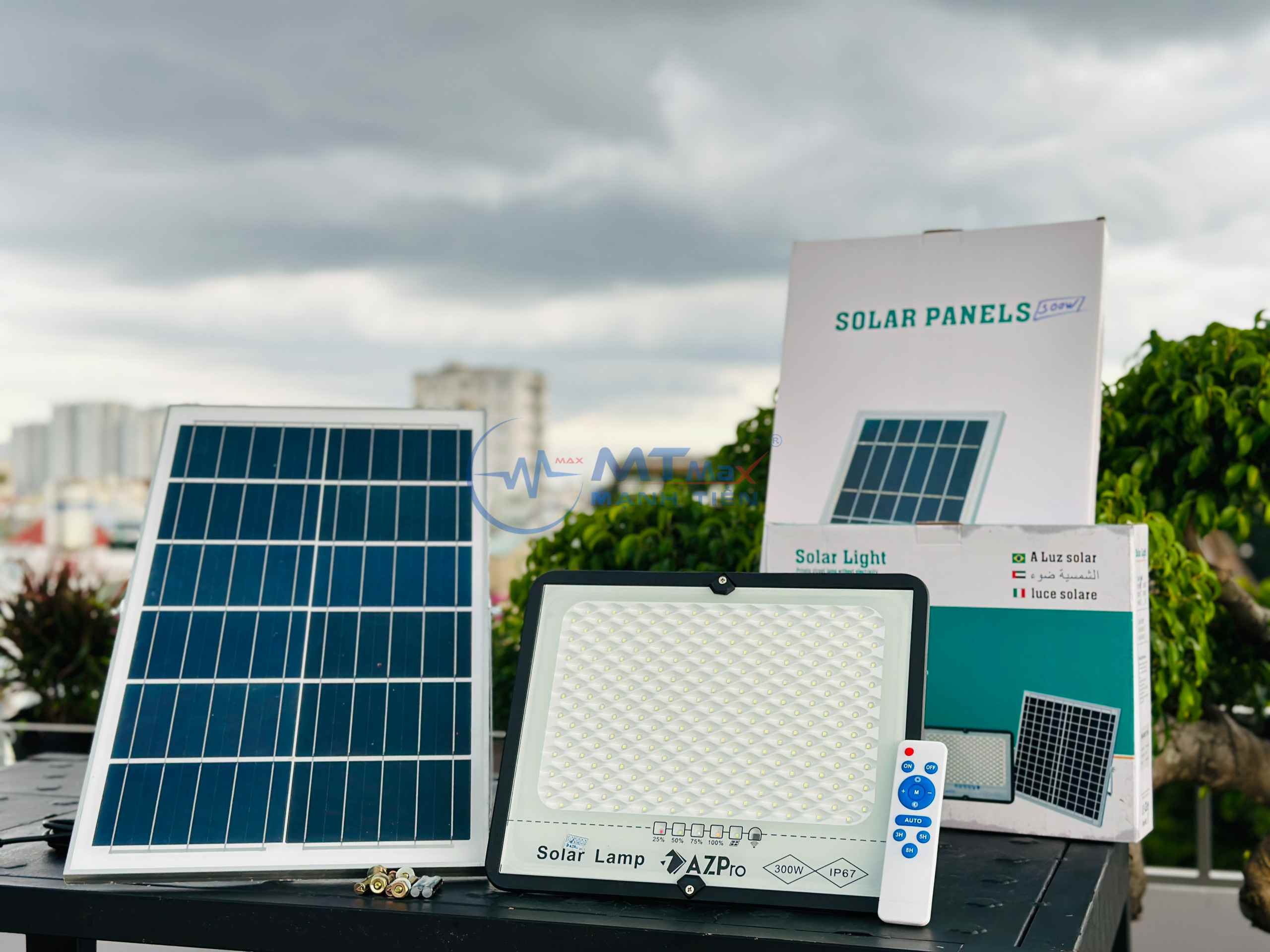 BỘ ĐÈN CHIẾU SÁNG NĂNG LƯỢNG MẶT TRỜI AZPRO – 300W BAO GỒM:
