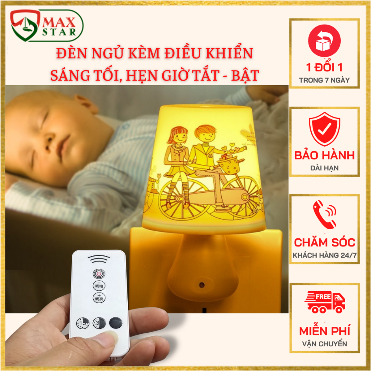 Đèn ngủ bóng LED điều khiển sáng tối, hẹn giờ tắt bật từ xa cao cấp