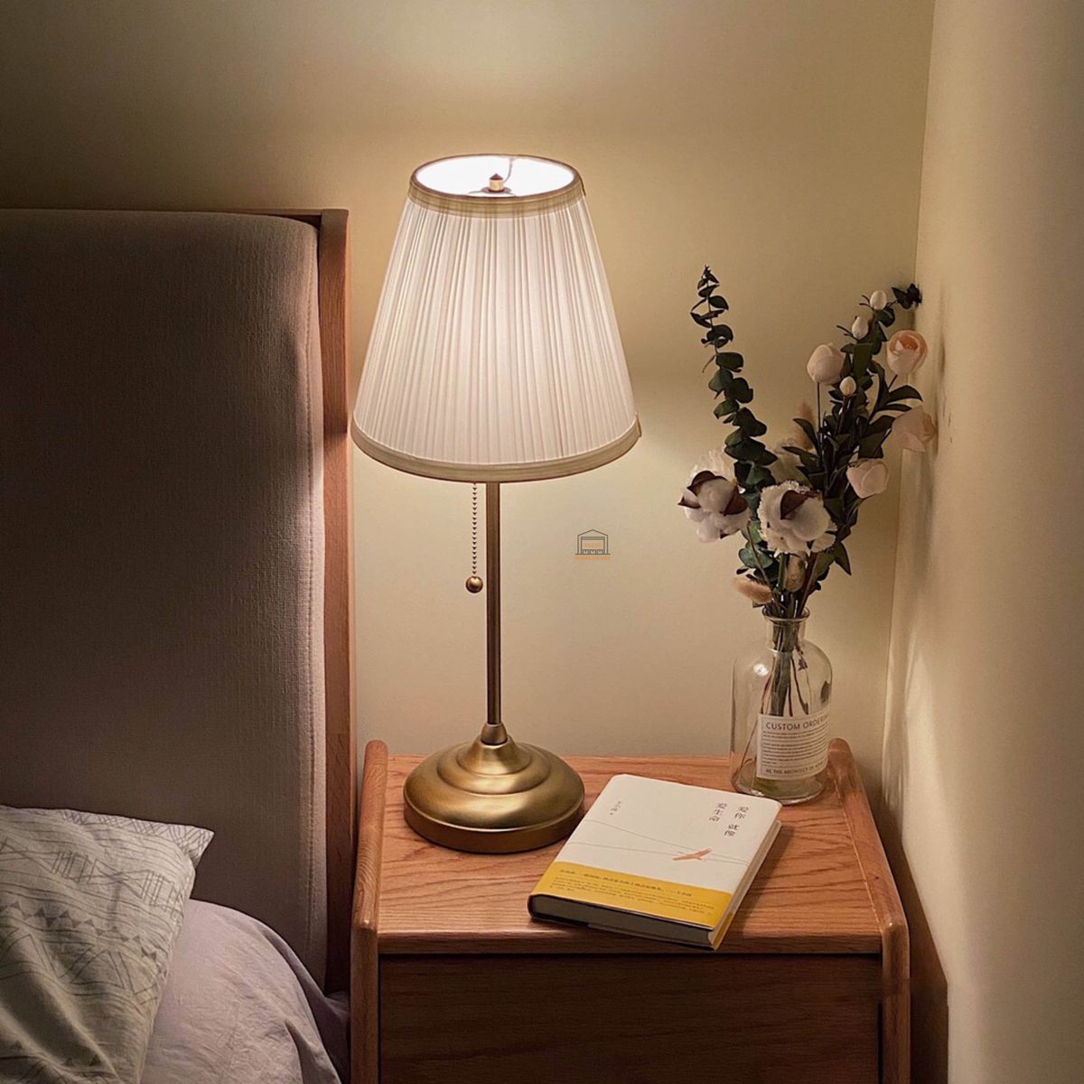 Đèn ngủ giật dây để bàn chân đồng, đèn màu vàng ấm trang trí phòng ngủ