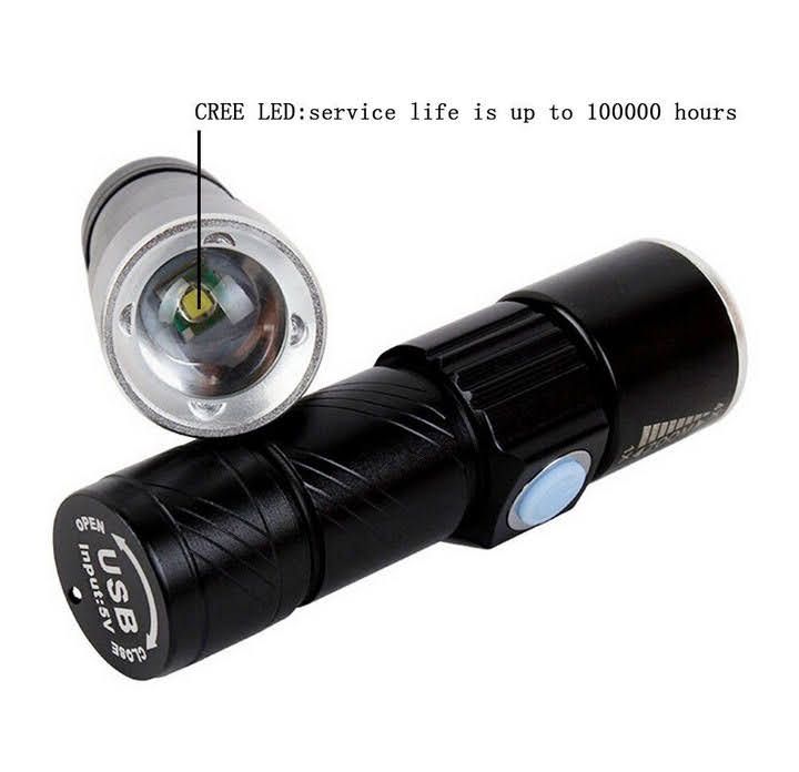 Đặc điểm nổi bật: Đèn Pin Siêu Sáng Sạc USB Zoom 4x cầm chắc tay, kèm thêm dây móc nên có thể dễ dàng mang theo bên mình.