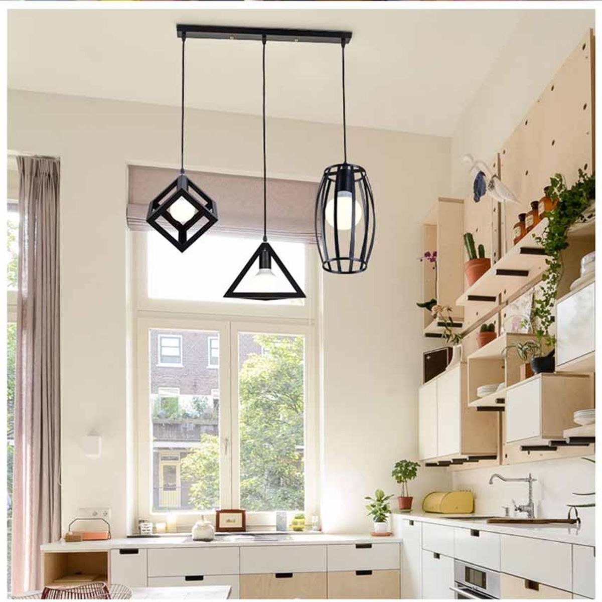 + Bộ 3 đèn thả hình học gồm: thả lập phương, thả khối tam giác và thả bầu dục