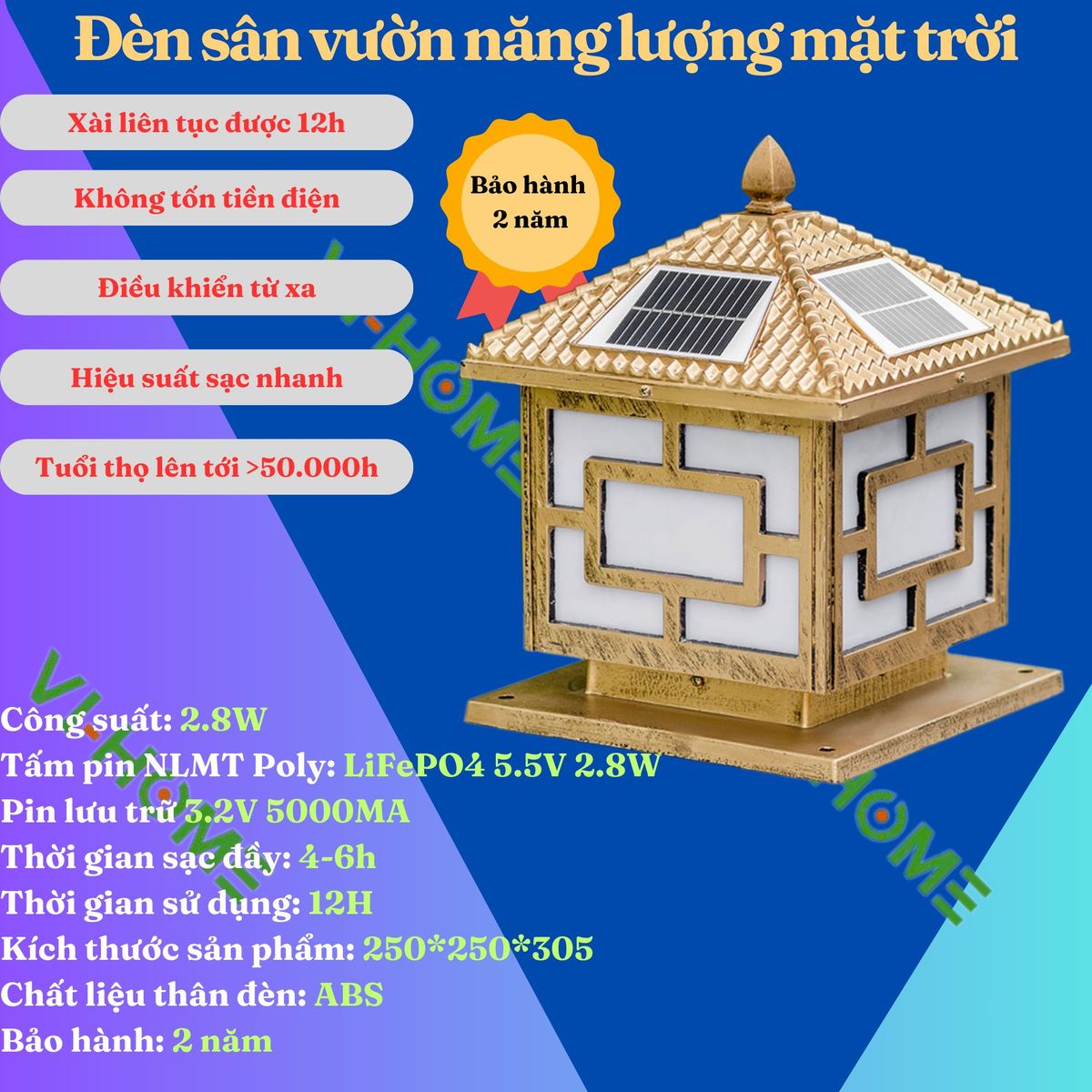 Đèn vườn năng lượng mặt trời màu đồng sử dụng liên tục trong 12H, bảo hành 2 năm