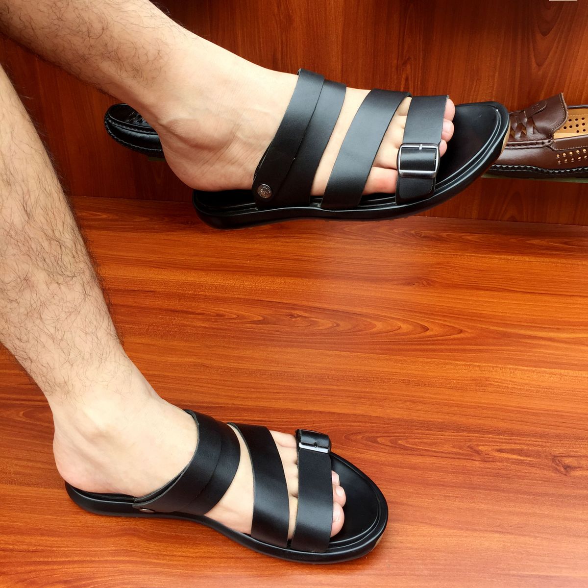 -Quai dép được làm từ da bò Tự Nhiên vết cắt của da có lớp xơ . - Đế được làm từ cao su, có độ mềm dẻo và chống trơn trượt