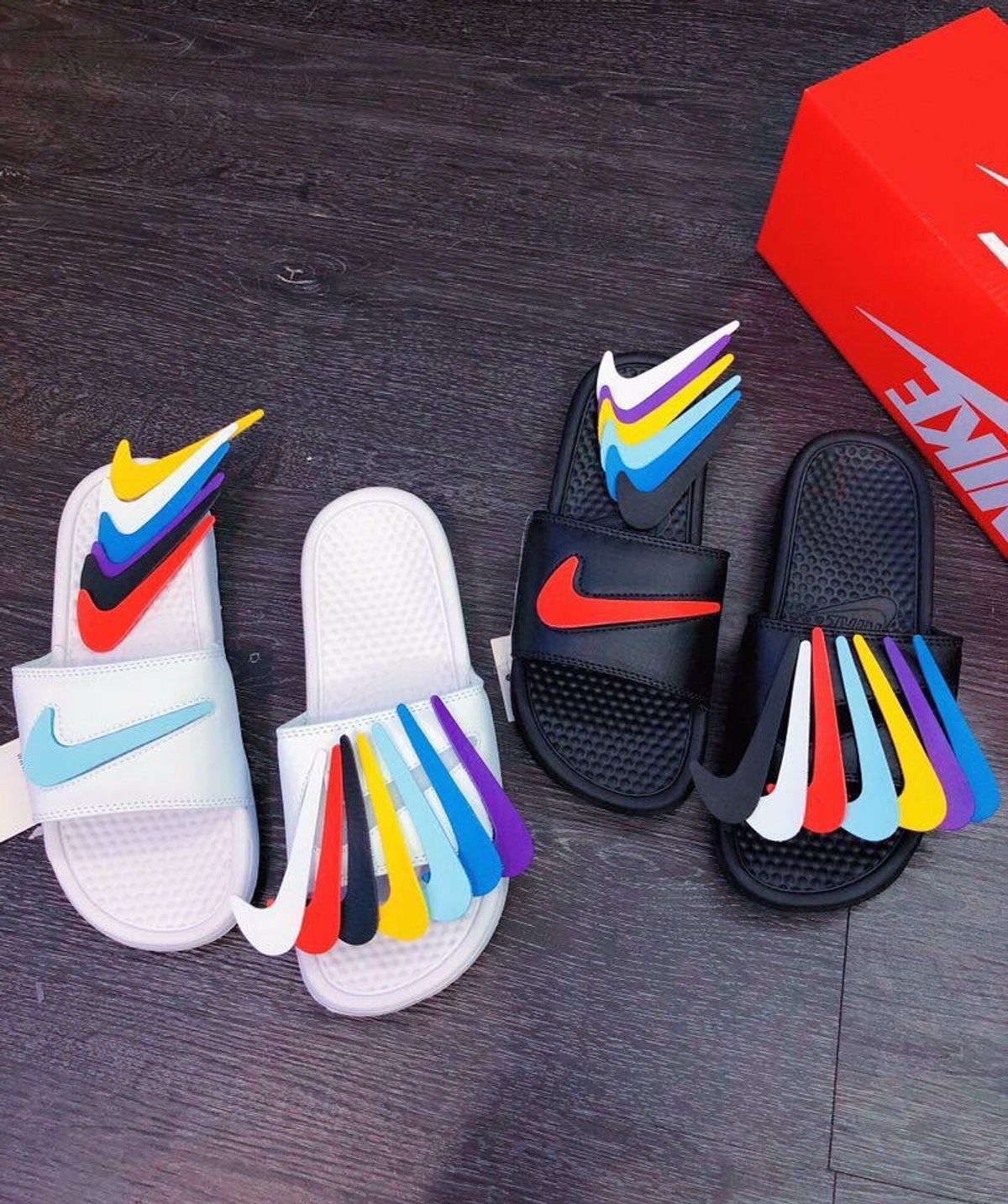 Dép quai ngang từ chất liệu cho đến phối màu custom độc lạ, đẹp mắt.