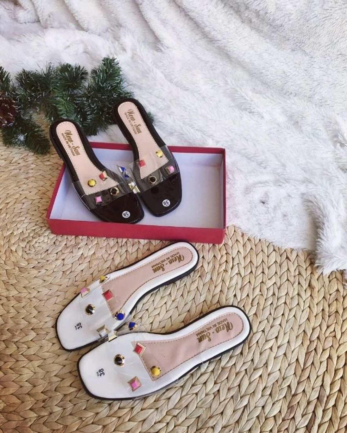Dép quai trong đính châu siêu đẹp.