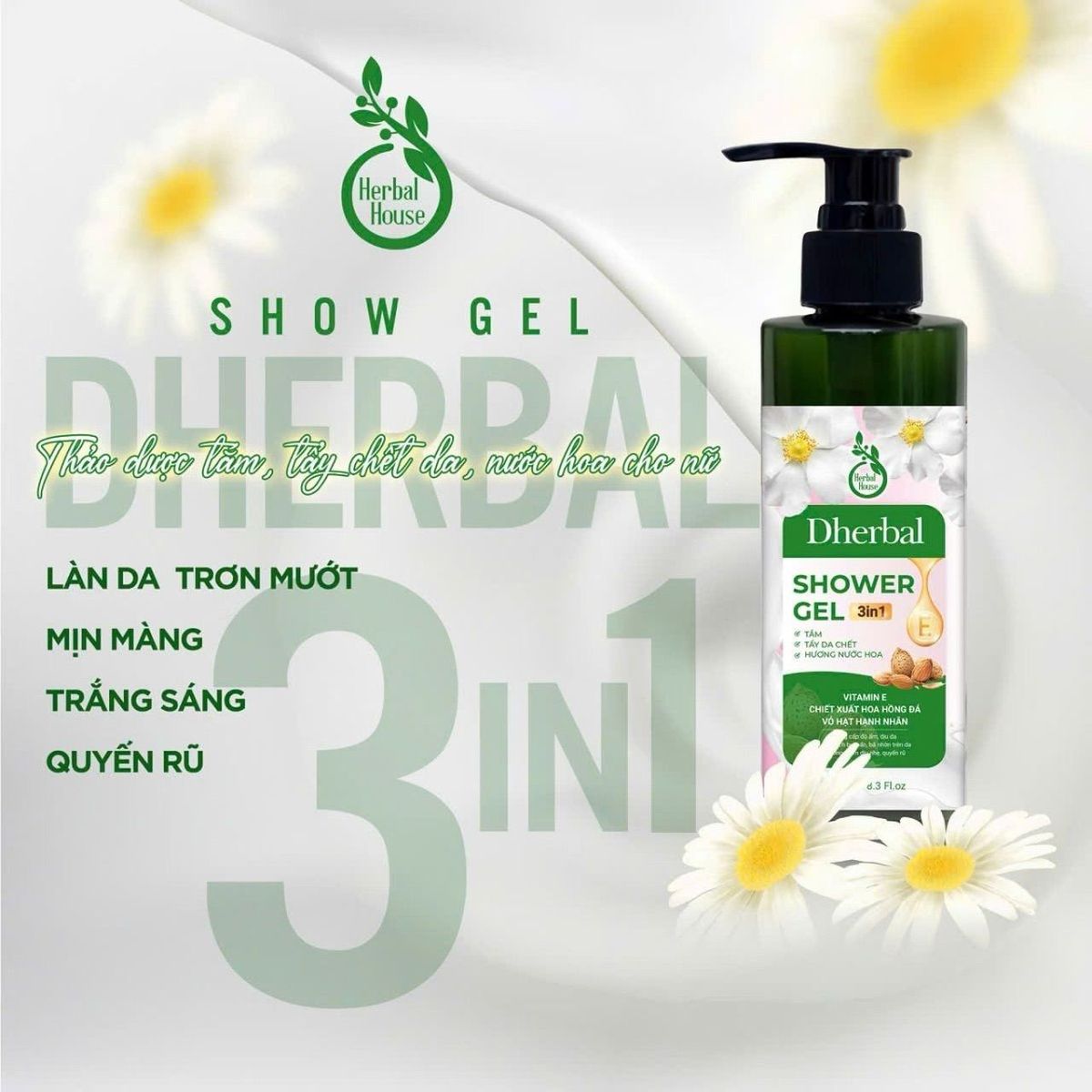 Dherbal 4in1 Thảo Dược Tắm Gọi Xả Tẩy Da Chết Nước Hoa Dành Cho Nữ Chai 250ml