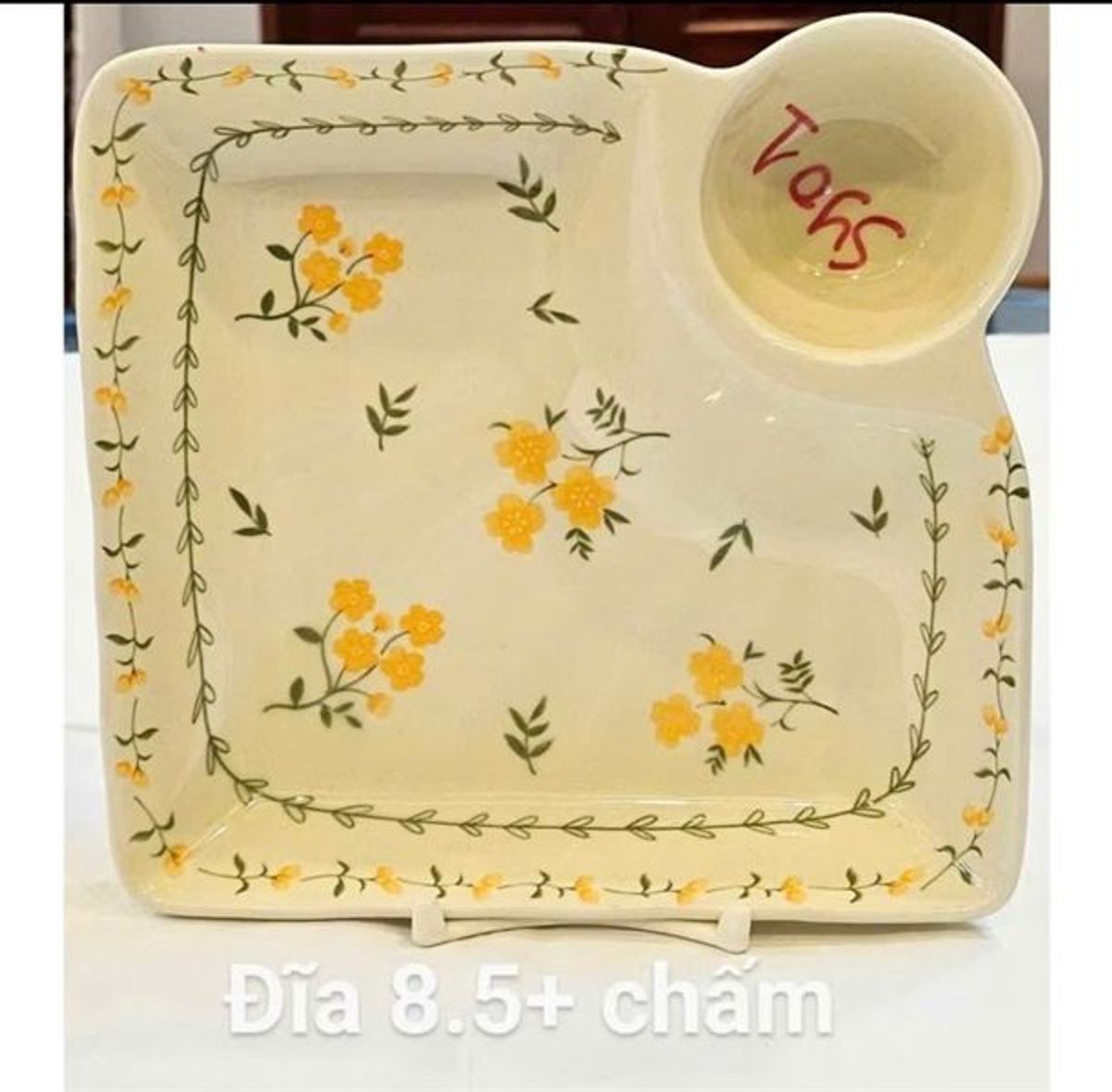 Đĩa vuông kèm chấm họa tiết cúc vàng