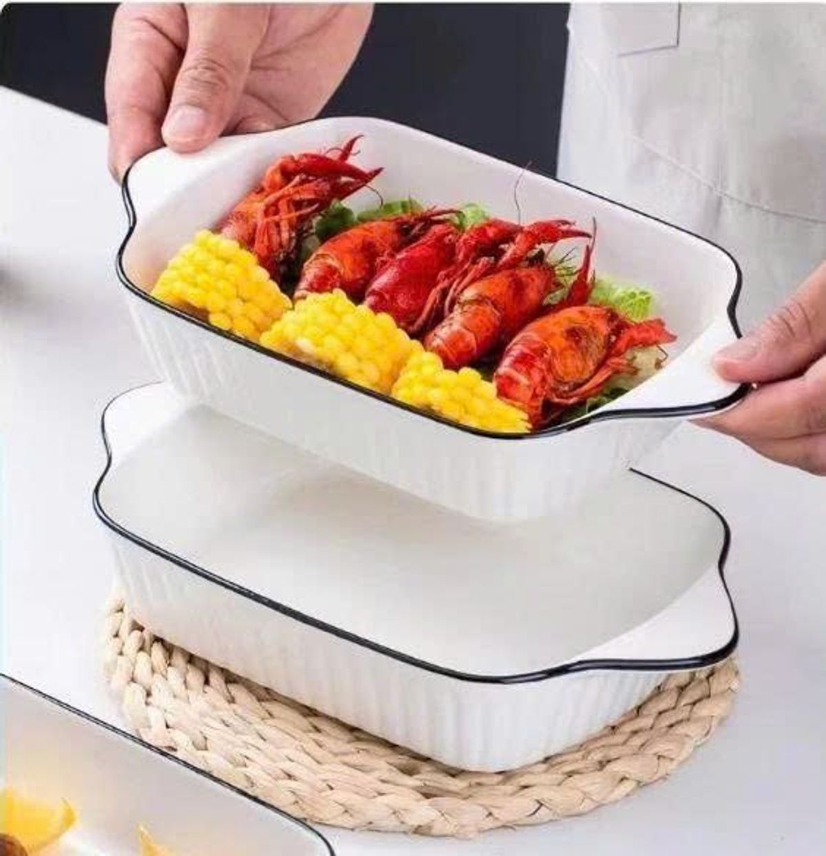 ĐĨA SỨ HÌNH CHỮ NHẬT SỌC VIỀN ĐEN CÓ TAI CẦM giá sỉ - giá bán buôn
