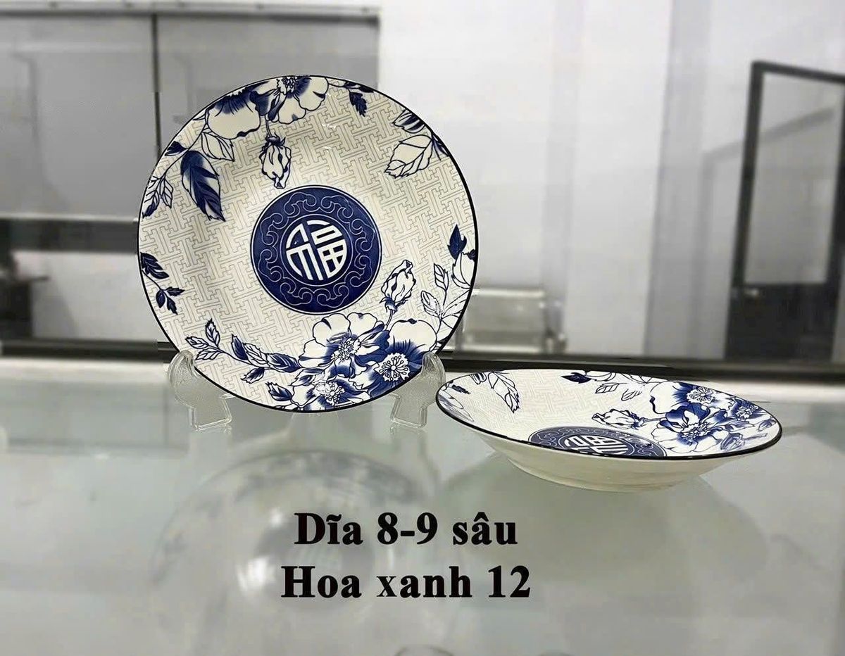 ĐĨA SỨ SÂU HOA XANH CHỮ PHÚC SIZE 9 - 22CM (T40) giá sỉ - giá bán buôn