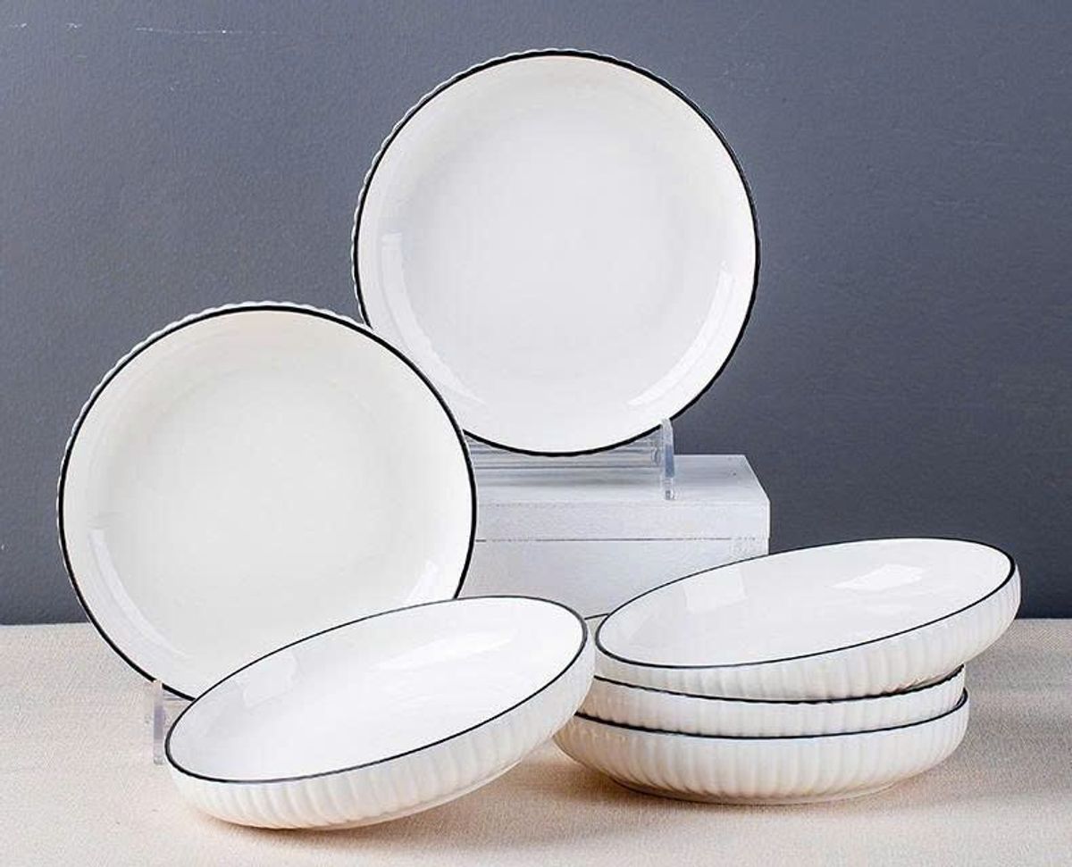 ĐĨA SỨ TRÒN ẢO SỌC VIỀN ĐEN SIZE 6 (16CM)