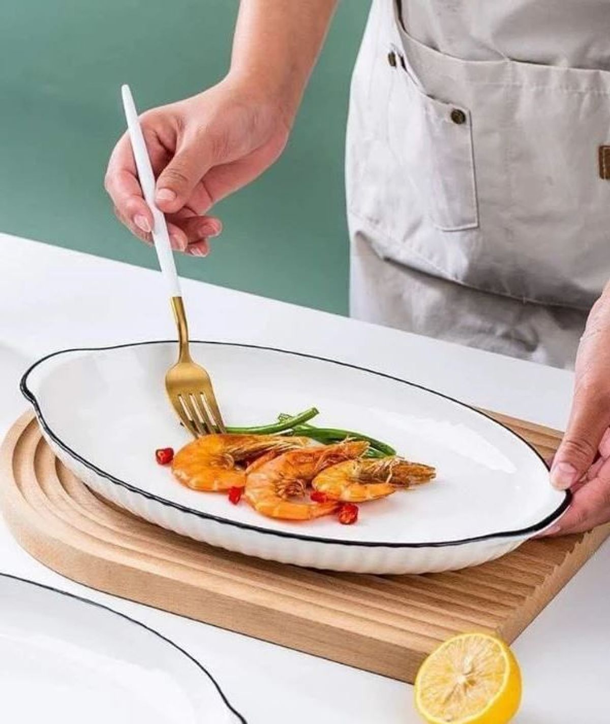 ĐĨA SỨ XOÀI SỌC VIỀN ĐEN 32CM TAI CẦM (T30) giá sỉ - giá bán buôn