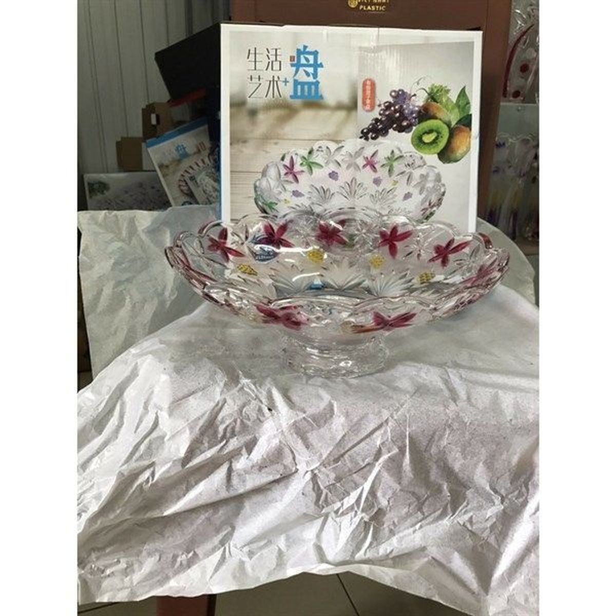 - Đặc điểm của đĩa trái cây này có thiết kế mở rộng , lòng đĩa sâu đựng được nhiều với thành đĩa cao nên ko lo thức ăn hay hoa quả rơi ra