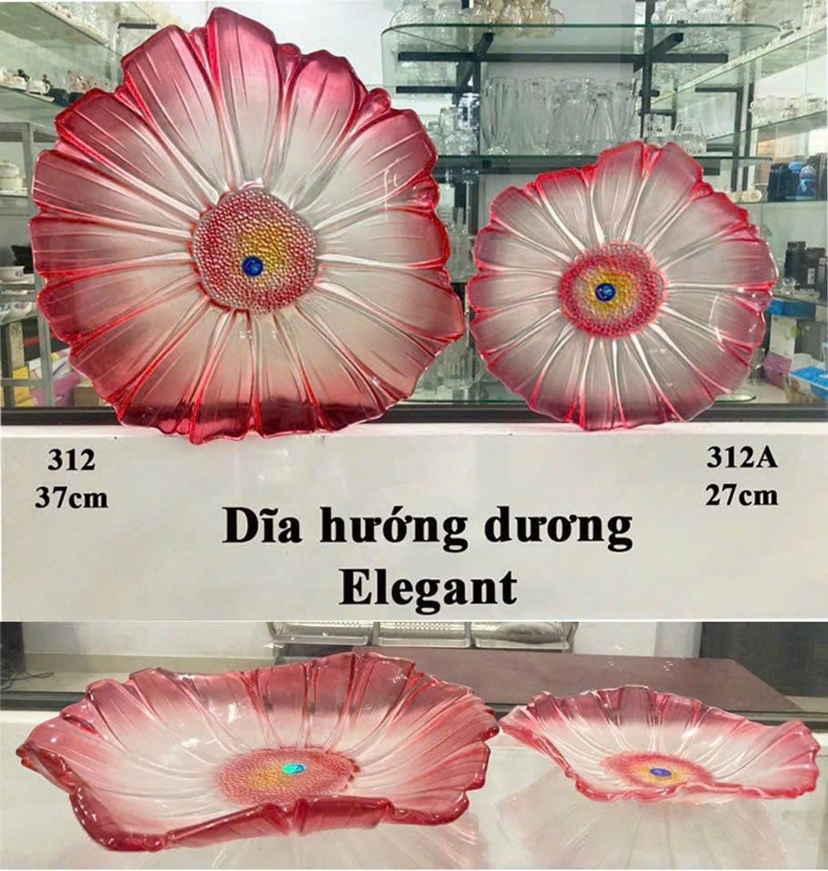 ĐĨA THỦY TINH MÀU 37CM HOẠ TIẾT HƯỚNG DƯƠNG (T6) giá sỉ - giá bán buôn