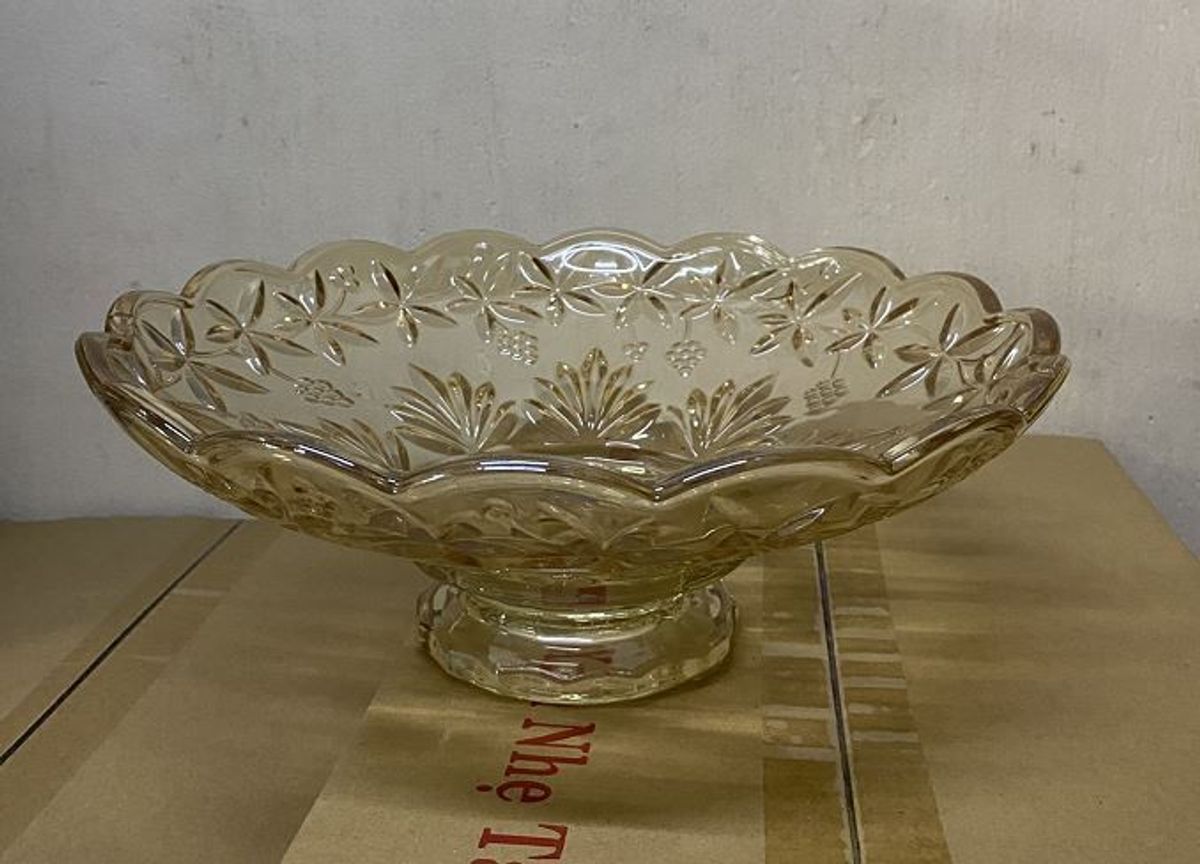 ĐĨA THUỶ TINH VÀNG 30CM CÓ CHÂN giá sỉ - giá bán buôn