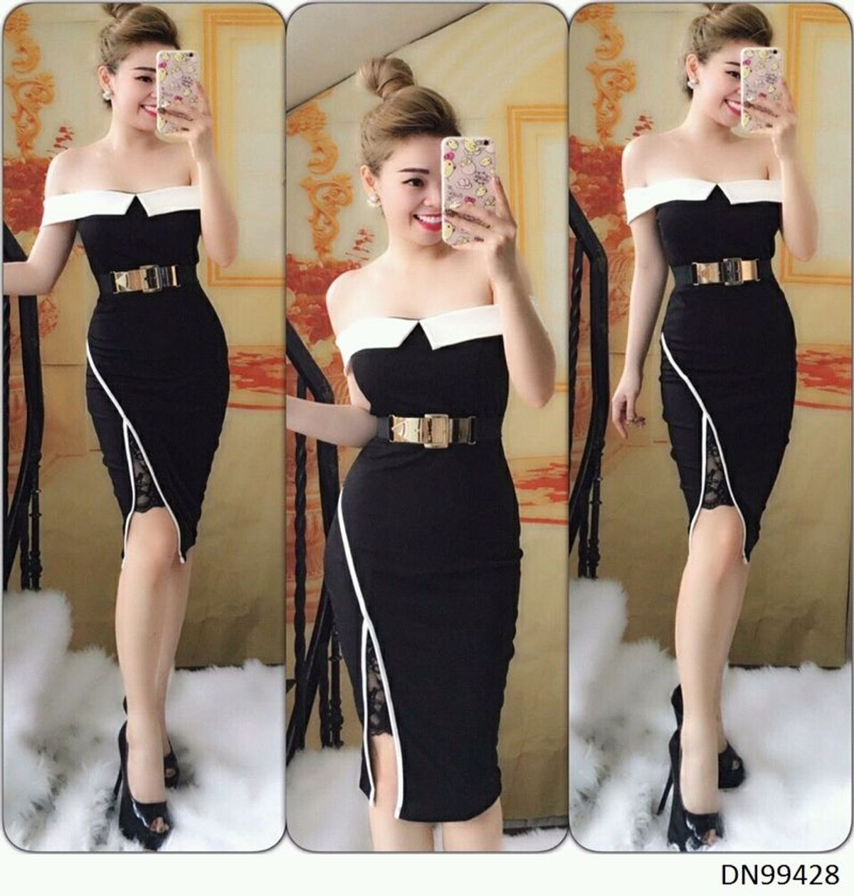 dn99428 - đầm bẹt vai dn99428 - đầm bẹt vai phối trắng giá sỉ/bán buôn
