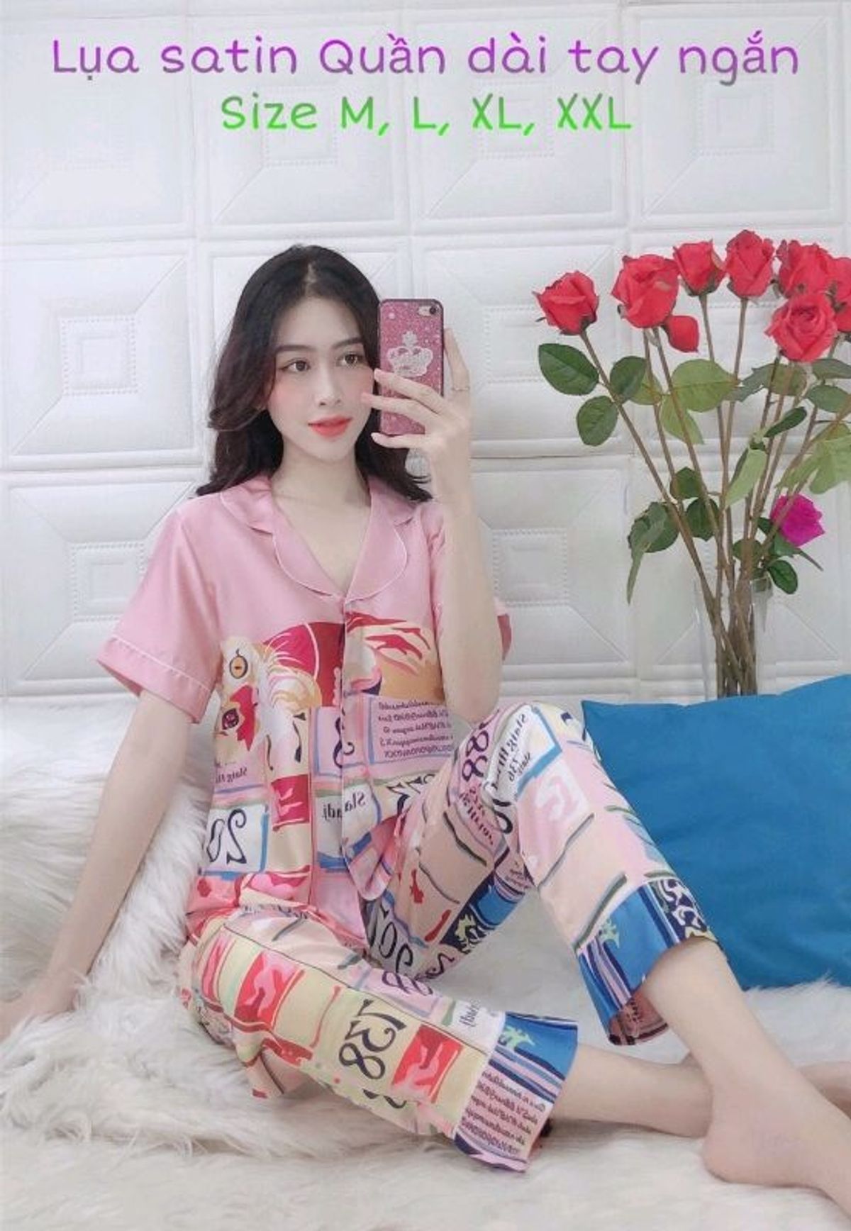 LỤA SATIN IN MÈO - QUẦN DÀI TAY NGẮN