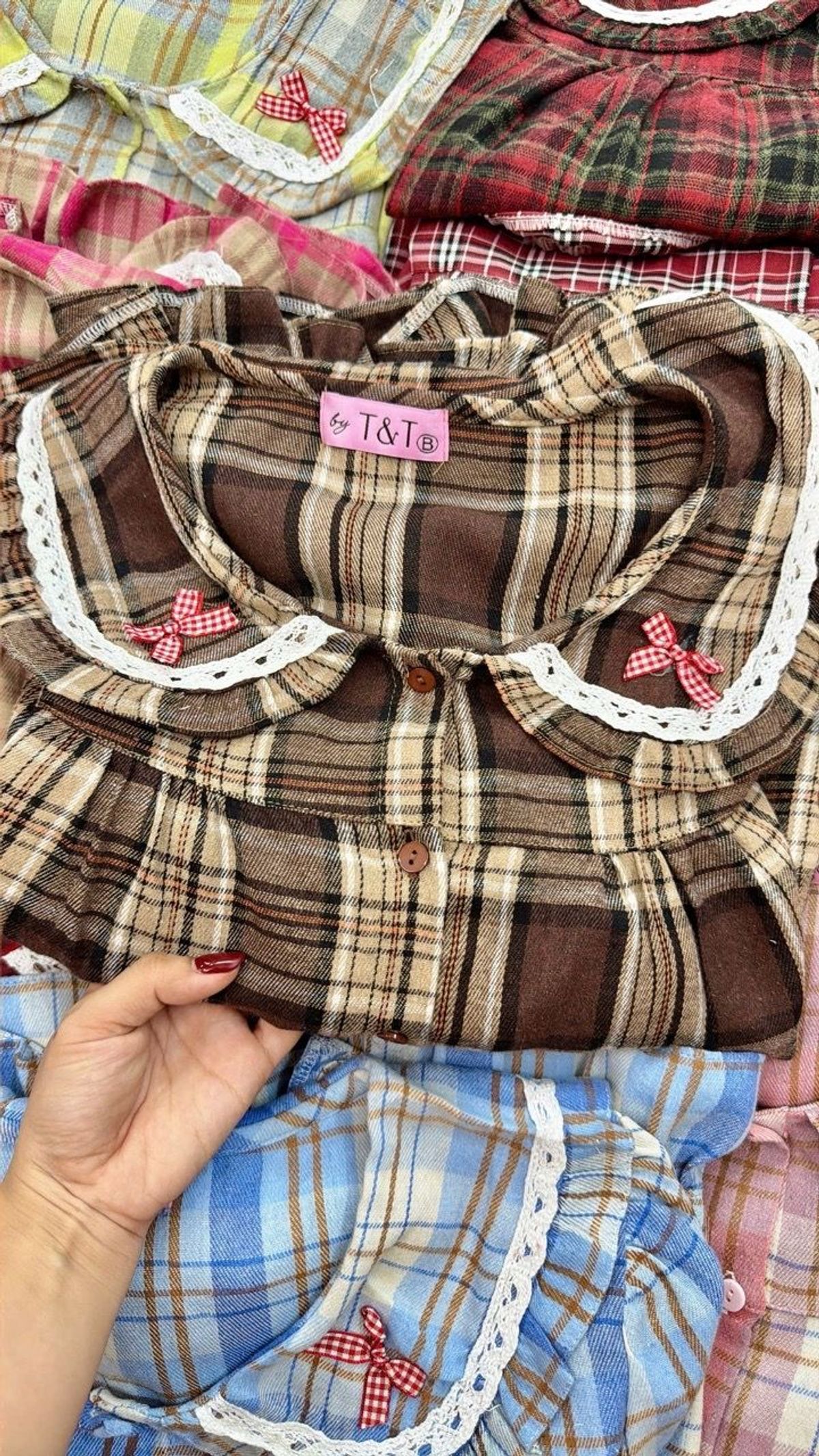Đồ bộ dài baby nơ caro