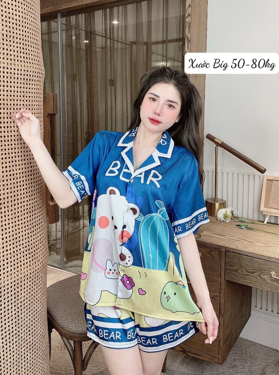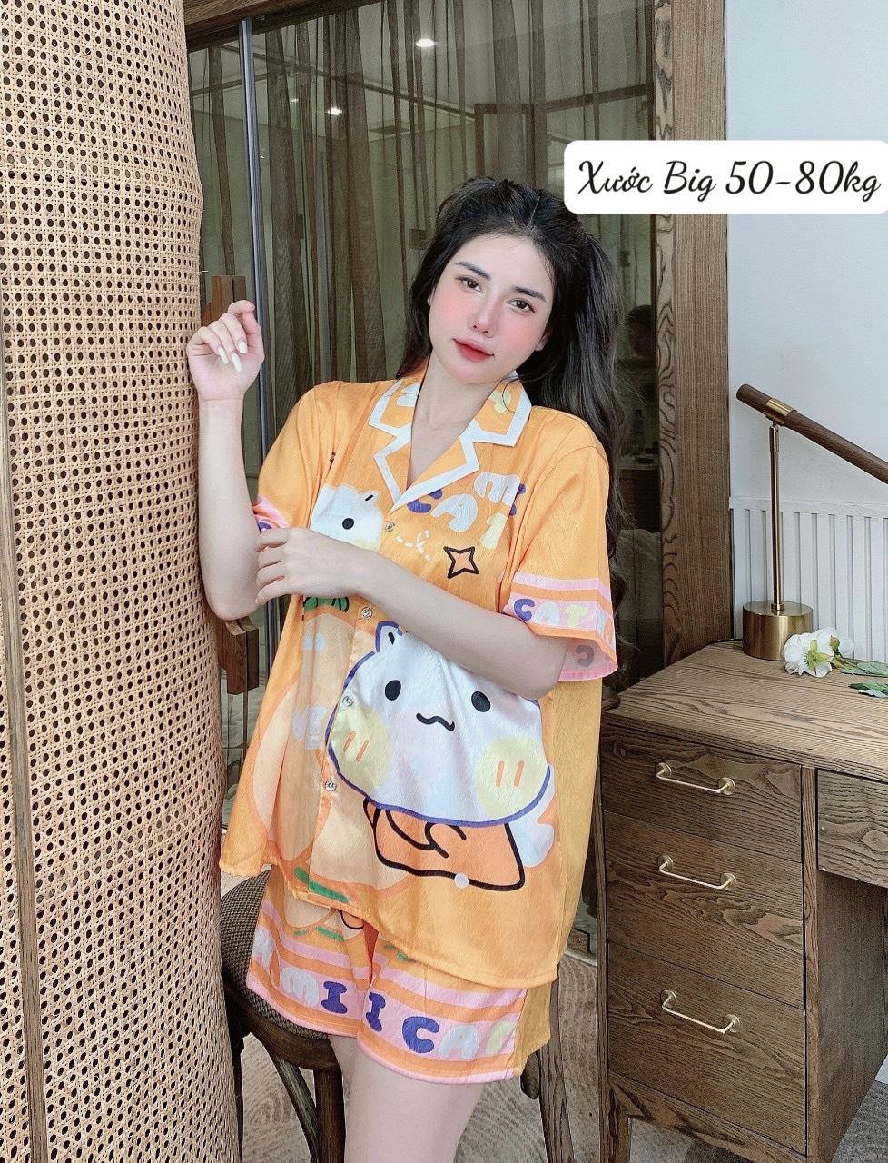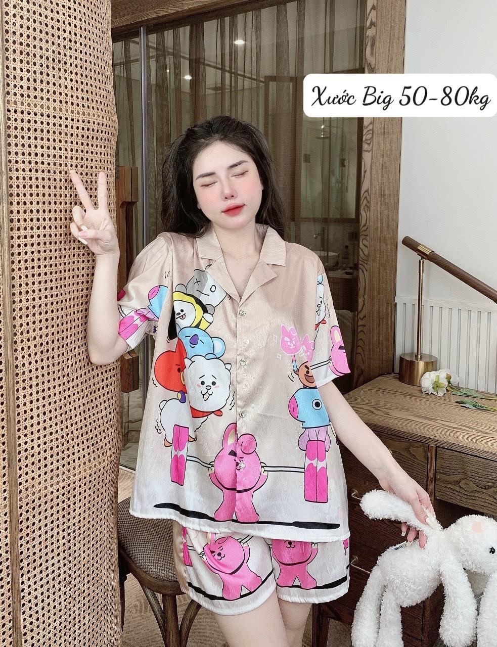 Đồ bộ mặc nhà pijama nữ chất liệu lụa xước cao cấp, mềm mại, FREESIZE 50-80KG giá sỉ/bán buôn