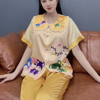 Đồ bộ ngủ nữ mặc nhà pijama cổ tiểu thư in 3chu gấu (Dài cộc) giá sỉ/bán buôn