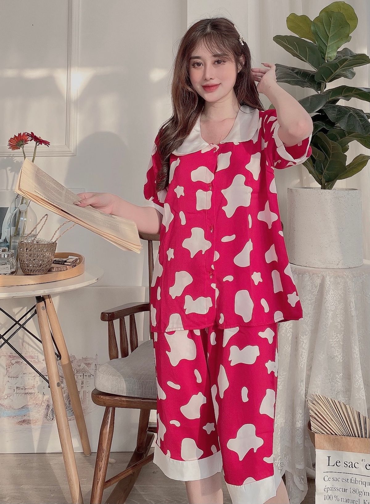 Đồ bộ nữ mặc nhà pijama cổ la sen loang bò sữa (Quần Lửng) giá sỉ/bán buôn