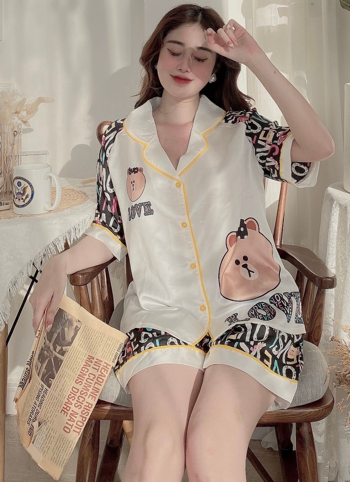 Đồ bộ pijama Satin in gấu tay lăng giá sỉ/bán buôn